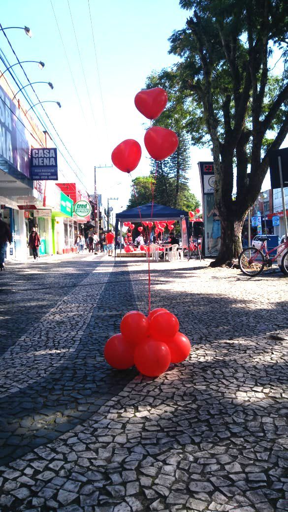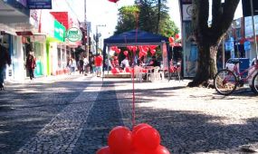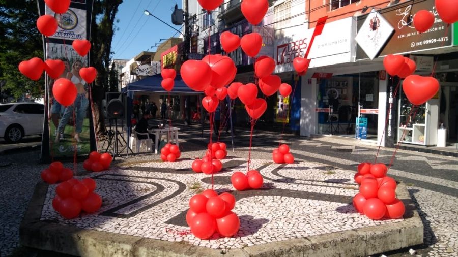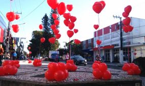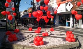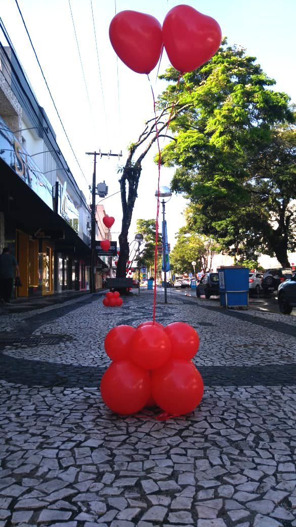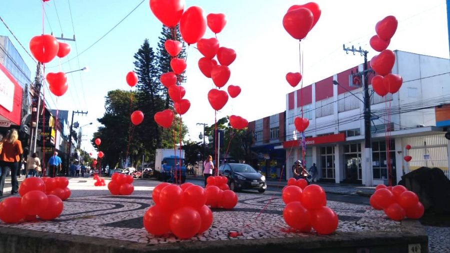O centro da cidade amanheceu mais romântico neste sábado. Dezenas de balões vermelhos em forma de coração foram instalados no início da manhã, antecipando a homenagem ao Dia dos Namorados durante a realização do Sábado Dia+.